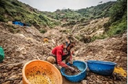 Une femme trie des pierres à la recherche d’or à la mine  de Kamituga.