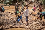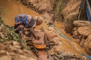 Alors que la loi de la RDC interdit le travail des enfants, on peut voir des enfants creuser dans la boue rouge des rivières de Kamituga.