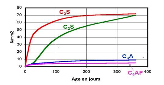 Fig. 12. Allure des phases cristallochimiques dans la résistance du ciment
