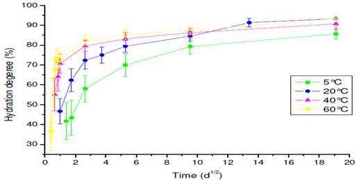 Fig. 31. Allure du degré d’hydratation en fonction de la température dans le