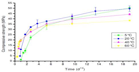 Fig. 32. L’évolution de la compression, dans les matériaux cimentaires, en