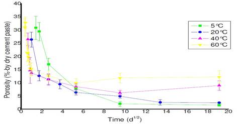 Fig. 33. L’évolution de la porosité, dans les matériaux cimentaires, en fonction de la température.