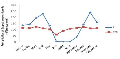Figure 2. Précipitations et évapotrans pirations de références à Kins has a