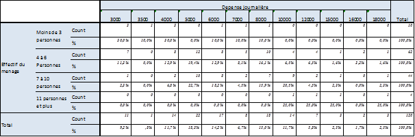 Combien d’argent le ménage dépense-t-il par jours pour manger (en franc) ? |